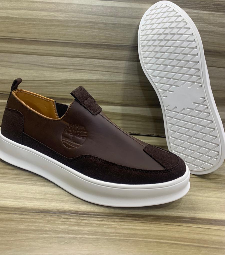 brown and white REEBOK TMLAND SHOE (N55,000)